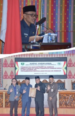 RIAUMADANI. COM, BENGKALIS - Dua Rancangan Peraturan Daerah (Ranperda) telah disampaikan, Bupati Bengkalis diwakili Wakil Bupati H. Bagus Santoso mohon masukan serta saran dari pimpinan dan anggota DPRD Kabupaten Bengkalis supaya segera menyetujui.