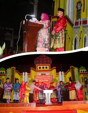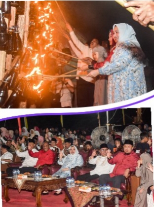 RIAUMADANI. COM. MANDAU - Masih dalam suasana kemeriahan menyambut tahun baru Islam, Bupati Bengkalis Kasmarni menghadiri Festival Kebudayaan dan Kesenian Lampu Colok, Kecamatan Mandau, semarak 1 Muharram 1445 Hijriyah, Rabu malam, 18 Juli.