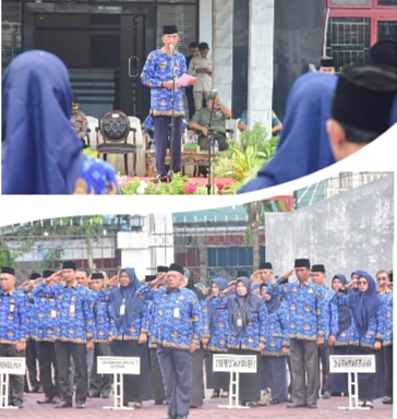 RIAUMADANI. COM, BENGKALIS - Sebagai bentuk dalam meningkatkan integrasi bangsa melalui wawasan kebangsaan, Pemerintah Kabupaten Bengkalis melaksanakan upacara hari Kesadaran Nasional, Senin, 17 Juli 2023 di lapangan Kantor Bupati.