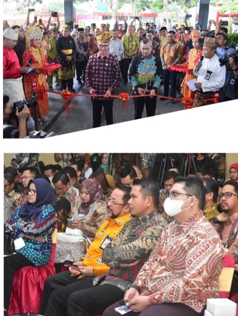 RIAUMADANI. COM, BENGKALIS - Bupati Bengkalis Kasmarni bersama Wakil Bupati Bengkalis H Bagus Santoso membuka Expo Ekonomi Kreatif Pesona Bermasa 2023, Kamis, 16 Maret 2023 di halaman Wisma Daerah Sri Mahkota.