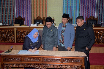 BENGKALIS - Bupati Bengkalis Kasmarni mengucapkan terima kasih serta apresiasi dan penghargaan yang setinggi-tingginya atas kinerja seluruh anggota DPRD Kabupaten Bengkalis yang berhasil mengambil keputusan terhadap Ranperda tentang.