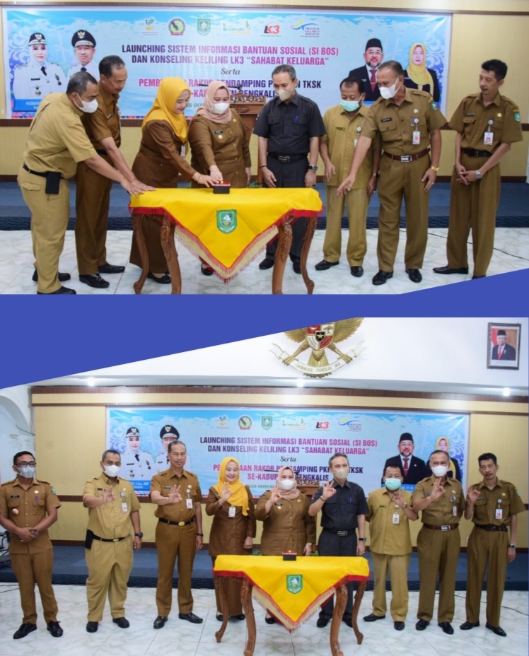 BENGKALIS - Bupati Bengkalis Kasmarni, Launching Sistem Informasi Bantuan Sosial (Si Bos) dan Konseling Keliling LK3 "Sahabat Keluarga" inovasi dari Dinas Sosial Kabupaten.