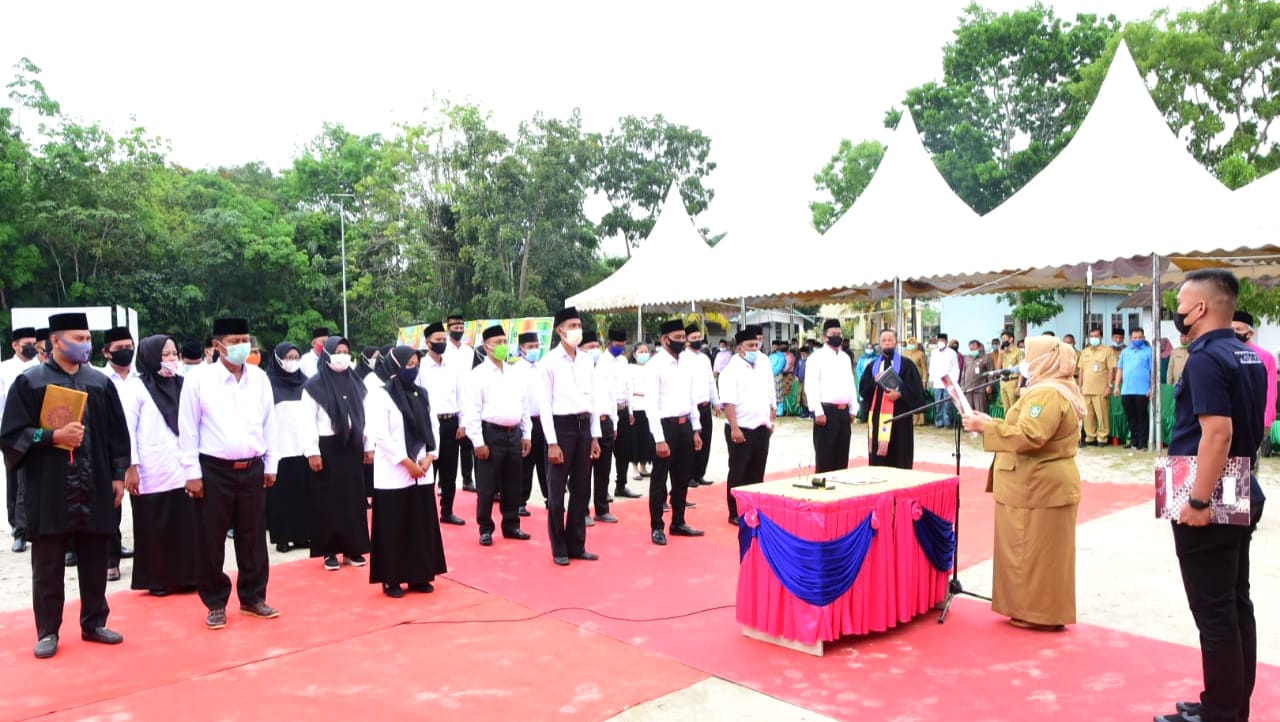 RIAUMADANI. COM - Bupati Bengkalis Kasmarni melantik 33 orang anggota Badan Permusyawaratan Desa (BPD) di lapangan bola kaki Desa Beringin belakang kantor Camat Talang Muandau.Jumat.