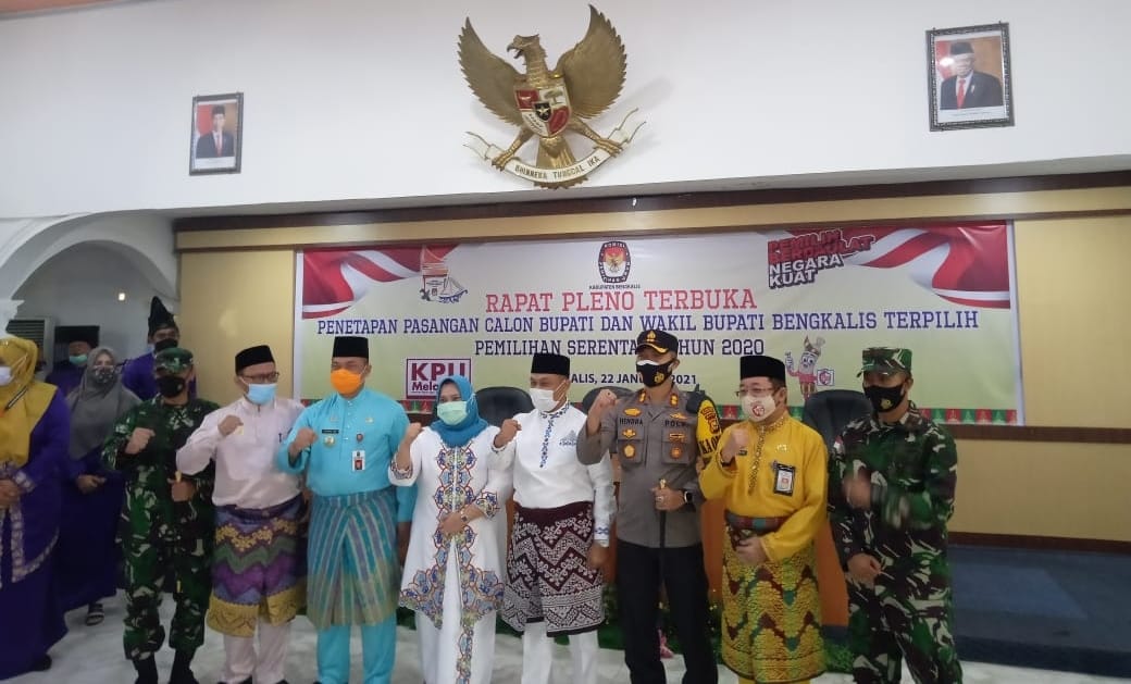 RIAUMADANI. COM - Komisi Pemilihan Umum (KPU) Kabupaten Bengkalis mengelar Rapat Pleno terbuka Penetapan Bupati dan Wakil Bupati Bengkalis Terpilih di Pilkada 2020 di Gedung Daerah Dt Laksamana Raja Dilaut. Jumat.