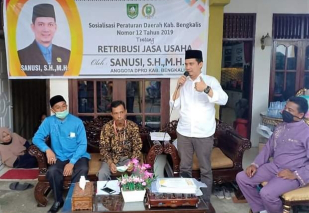 BATIN SOLAPAN. RIAUMADANI. COM - Anggota komisi I DPRD Kabupaten Bengkalis Sanusi menggelar Sosialisasi tentang Peraturan Daerah Sabtu.