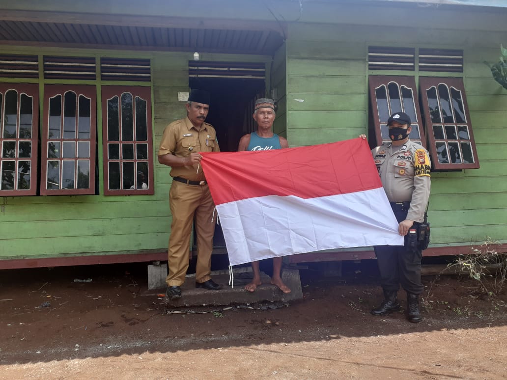 Kapolsek Bengkalis di wakili Bhaninkamtibmas Bagi-bagi Bendera Merah Putih ke Desa Perbatasan Malays