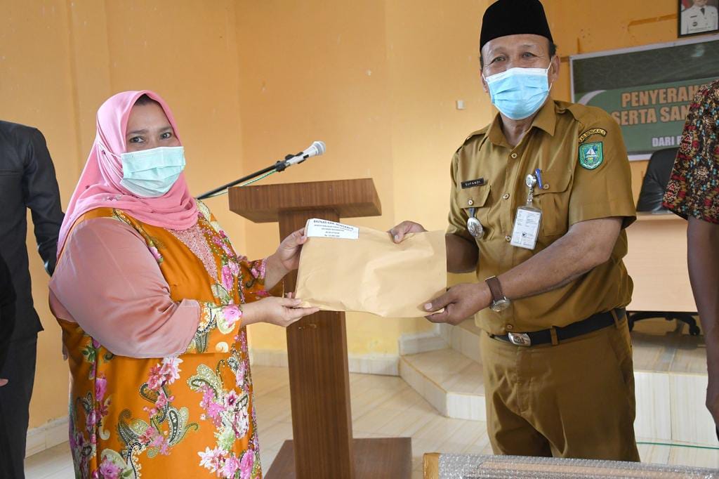BENGKALIS. RIAUMADANI. COM - Plh. Bupati Bengkalis H. Bustami HY, diwakili Staf Ahli Bupati Bidang Kemasyarakatan dan SDM Kasmarni membagikan bantuan.
