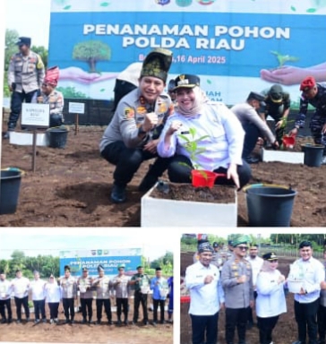 BENGKALIS. RIAU MADANI. COM -- Bupati Bengkalis Kasmarni dan Kapolda Riau Irjen Pol Herry Heryawan menanam pohon Geronggang di Kampung Tangguh Polres Bengkalis, di Jalan Poros Sungai Alam, Rabu, 16 April.