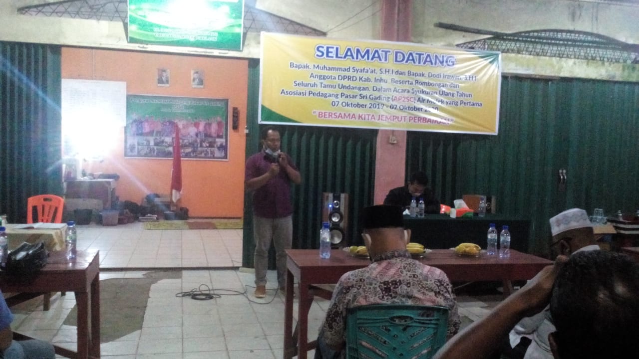 AirMolek, Inhu, RIAUMADANI. com - Dengan tema "Bersama Kita Jemput Perbaikan" Dalam acara syukuran Asosiasi Pedagang Pasar Sri Gading (AP2SG) di Hari Ulang Tahun (HUT) nya yang ke- 1, sekitar 50 undangan mengadakan syukuran di Sekretariat.