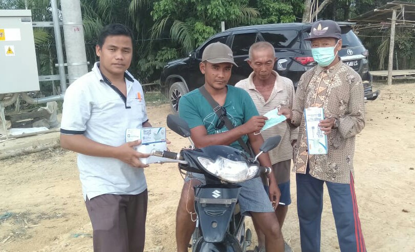 Peranap, Inhu, RIAUMADANI.com- Kegiatan sosial kemasyarakatan bagi- bagi masker yang digagas oleh seorang pengusaha muda dalam bidang jual beli Tandan Buah Sawit (TBS) asal Desa Talang Pring Jaya Bang Fiter Manurung didukung masyarakat setempat,.