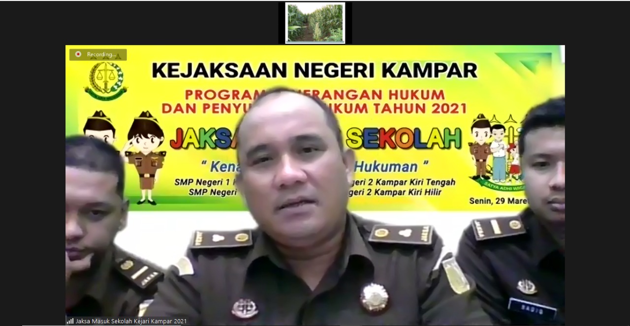 RIAUMADANI. COM - Kejaksaan Negeri (Kejari) Kampar melalui Kepala Seksi (Kasi) Intelijen kembali melaksanakan kegiatan Jaksa Masuk Sekolah (JMS) secara Virtual di empat sekolah di wilayah Rantau Kampar Kiri dan.
