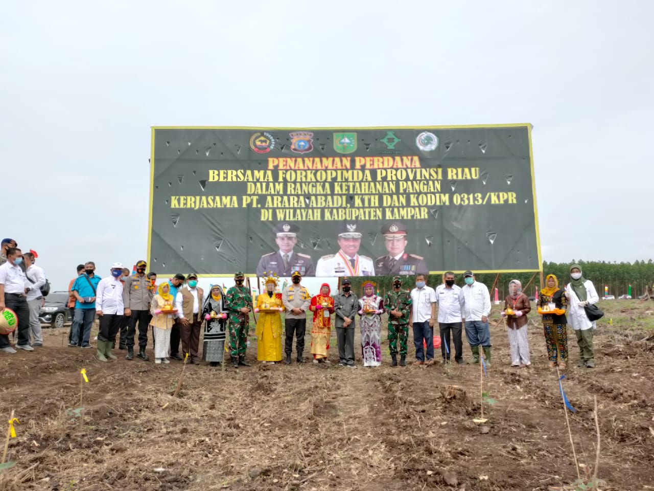 KAMPAR RIAUMADANI. COM - Rabu (16/9/2020) sekira pukul 09.15 Wib, bertempat di Lahan Konsesi PT. Arara Abadi Desa Bencah Kelubi Kecamatan Tapung Kabupaten Kampar, dilaksanakan Penanaman Perdana Benih Jagung.