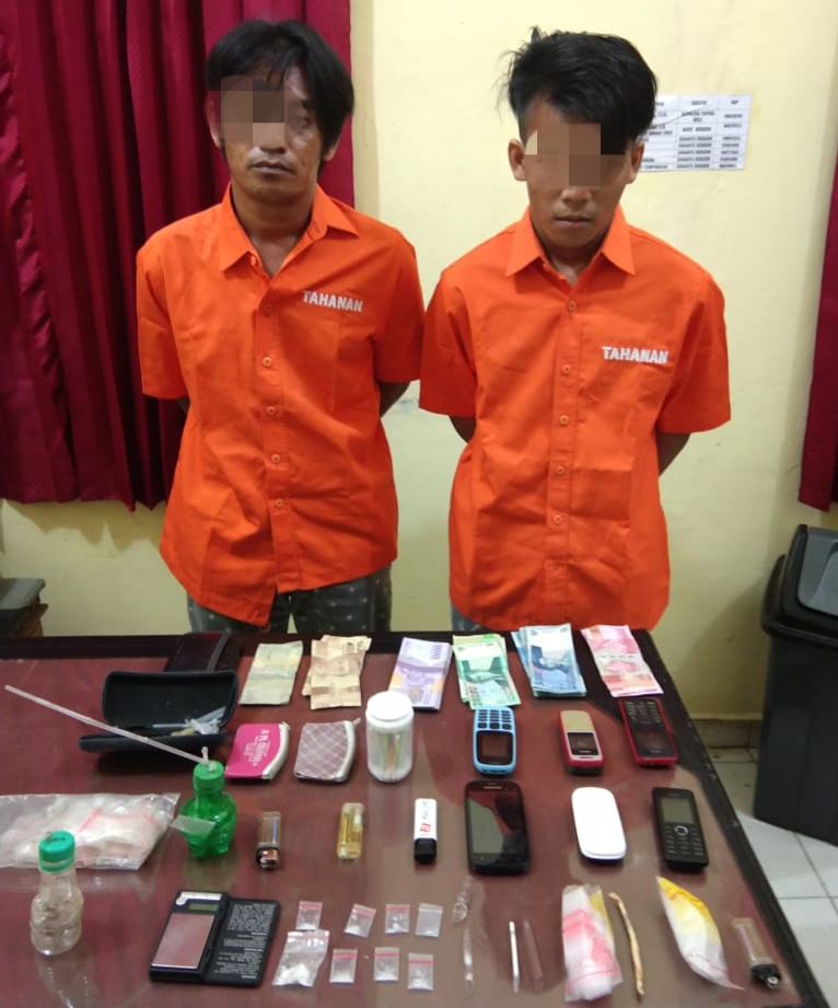 TAPUNG HULU. RIAUMADANI. COM - Unit Reskrim Polsek Tapung Hulu tangkap 2 pengedar narkotika jenis shabu, di wilayah Afdeling I PTPN-V Kebun Tamora Desa Kasikan Kecamatan Tapung Hulu, pada Rabu dinihari.