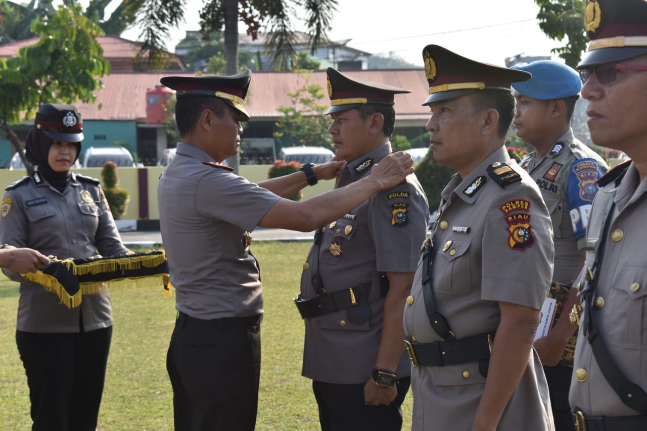 BANGKINANG. RIAUMADANI. COM - Bertempat di Lapangan Upacara Mapolres Kampar dilaksanakan Upacara Serahterima Jabatan Kasatres Narkoba dan Kapolsek.