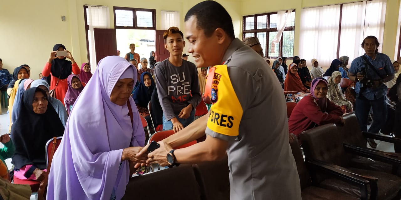 SALO. RIAUMADANI. COM - Kapolres Kampar AKBP Mohammad Kholid SIK memberikan bantuan sembako untuk 100 Warga Kurang Mampu di Kecamatan.