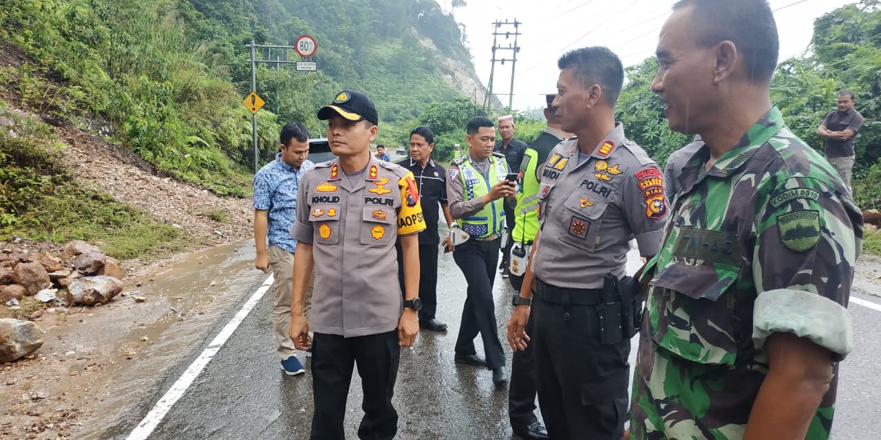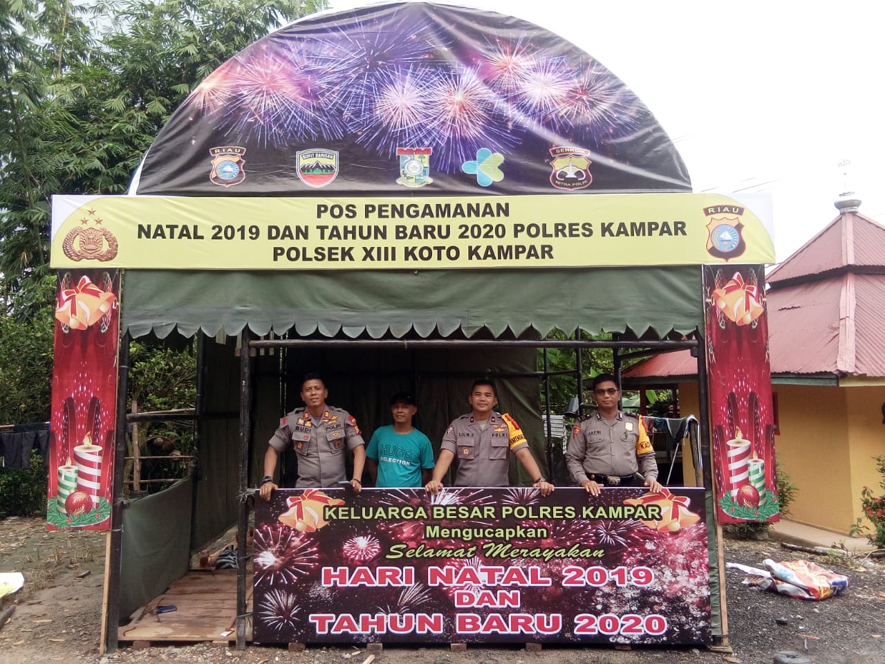 SIAK HULU. RIAUMADANI. COM - Kapolres Kampar AKBP Mohammad Kholid SIK bersama Ketua Cabang Bhayangkari Kampar Ny. Angela Kholid, kunjungi Pospam Operasi Lilin Muara Takus 2019 di Jalan Pasir Putih Desa Pandau.