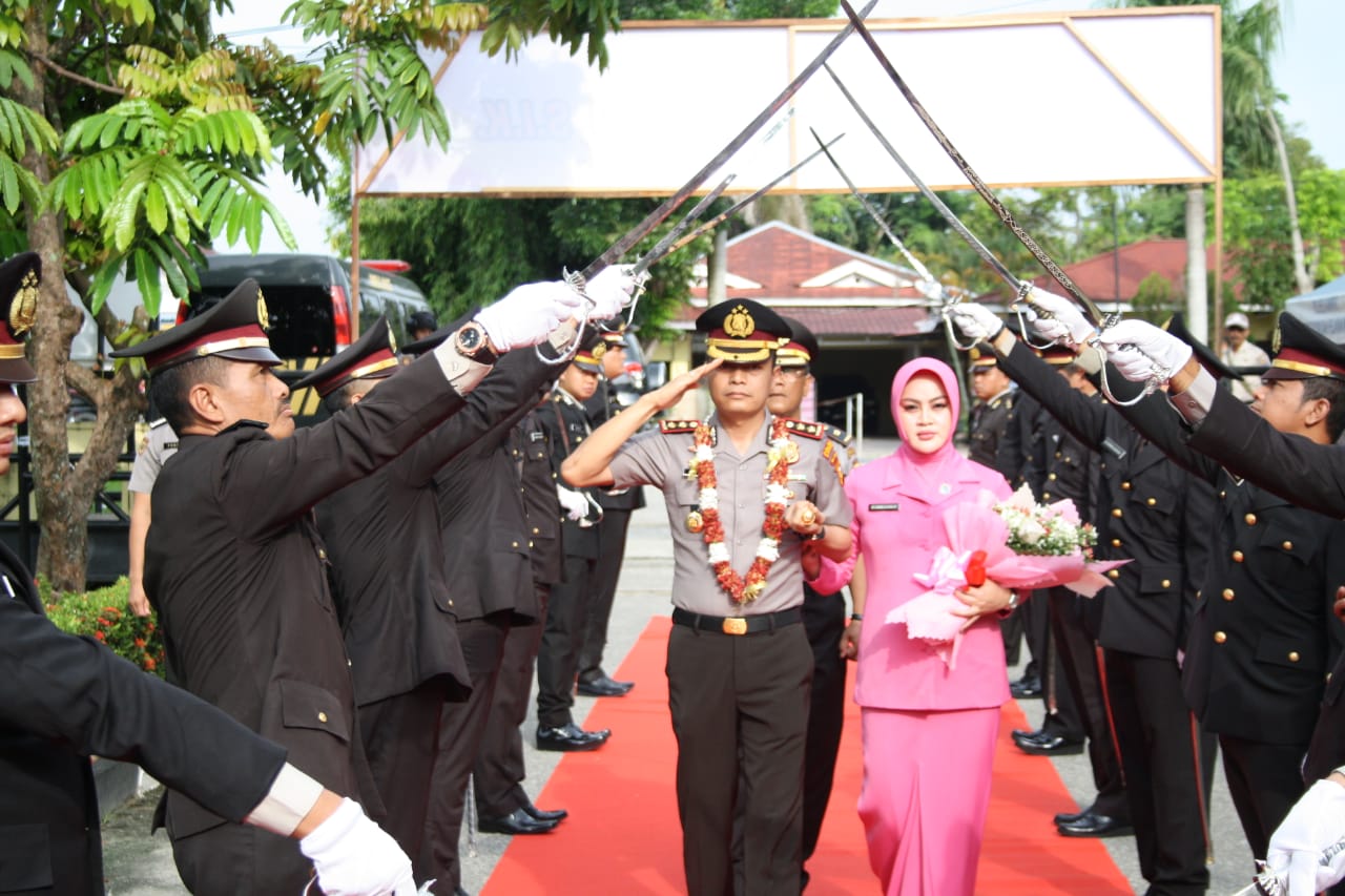 BANGKINANG. RIAUMADANI. COM - Bertempat di Halaman Mapolres Kampar digelar Acara Tradisi Penyambutan Kapolres Kampar yang baru AKBP Mohammad Kholid SIK.Senin (2/12/2019) sekira pukul 08.00.