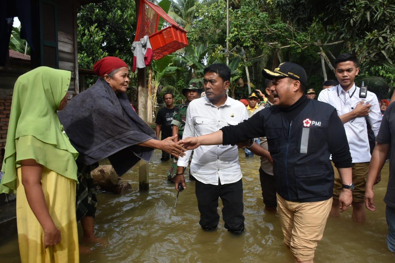 KAMPAR. RIAUMADANI. COM - Bupati Kampar H. Catur Sugeng Susanto, SH kembali melakukan peninjauan Banjir. Kiali ini Bupati Kampar meninjau korban banjir di Desa Pulau Rambai Kecamatan.