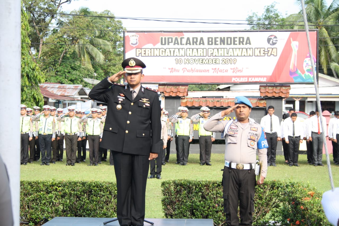 BANGKINANG. RIAUMADANI. COM - Minggu (10/11/2019) pukul 08.00 Wib, bertempat di Lapangan Upacara Mapolres Kampar dilaksanakan Upacara Bendera dalam rangka Memperingati Hari Pahlawan ke-74 tahun.
