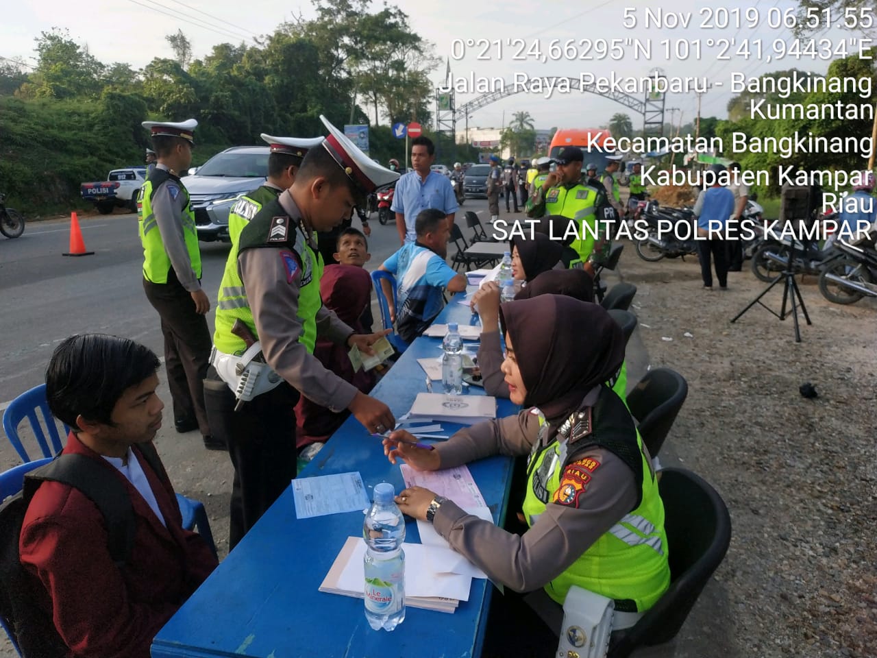 KAMPAR. RIAUMADANI. COM - Memasuki hari ke-10 pelaksanaan Operasi Zebra Muara Takus 2019, Jajaran Polres Kampar kembali menggelar razia dengan sistem stasioner pada Jumat pagi (1/11) di Simpang Latsitarda dekat.