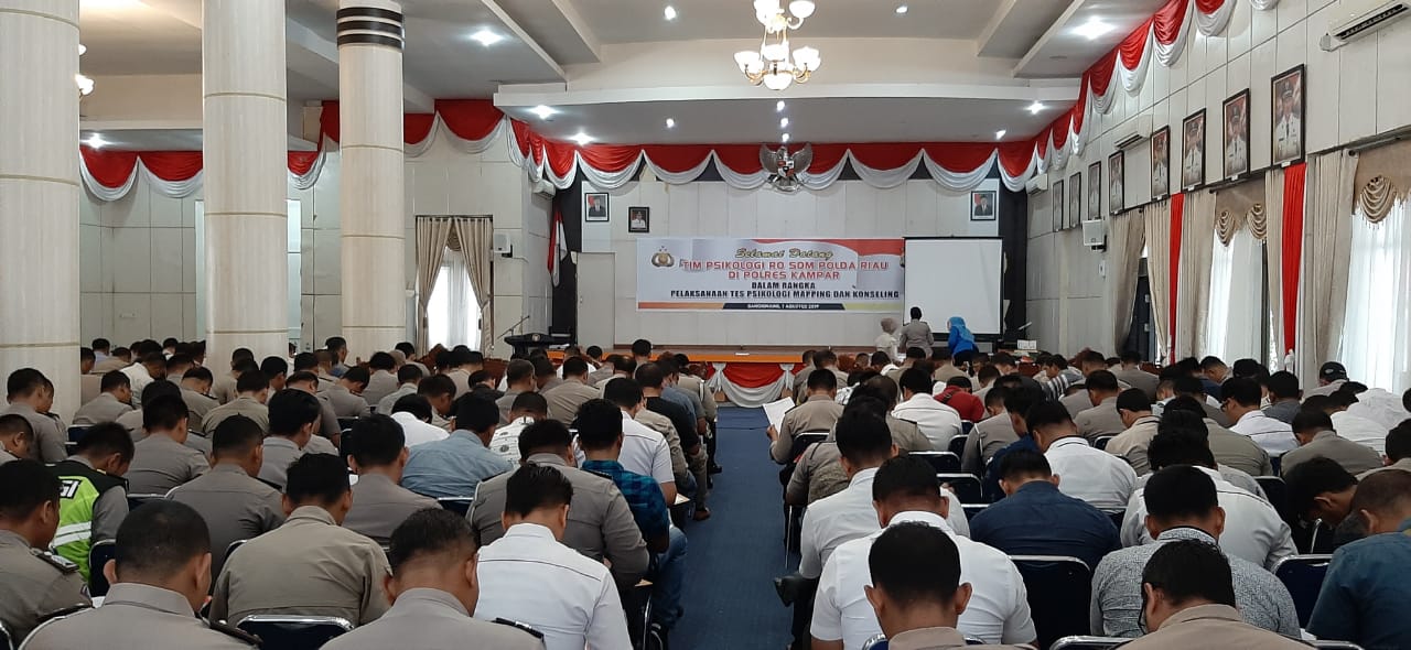 BANGKINANG. RIAUMADANI. COM - Rabu (7/8/2019) sekira pukul 09.30 Wib, bertempat di Aula Rumah Dinas Bupati Kampar Jalan Prof. M. Yamin SH Bangkinang Kota, dilaksanakan Tes Psikologi, Mapping dan Konseling bagi personel Polres Kampar dan Polsek.