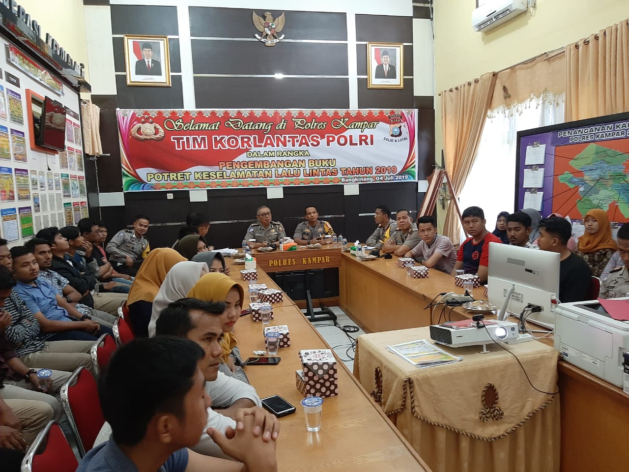 BANGKINANG. RIAUMADANI. COM - Tim Korlantas Polri melakukan Kunjungan Kerja di Polres Kampar dalam rangka Pengembangan Buku Potret Keselamatan Lalulintas Tahun 2019.Kamis (4/7/2019) sekira pukul 09.30.
