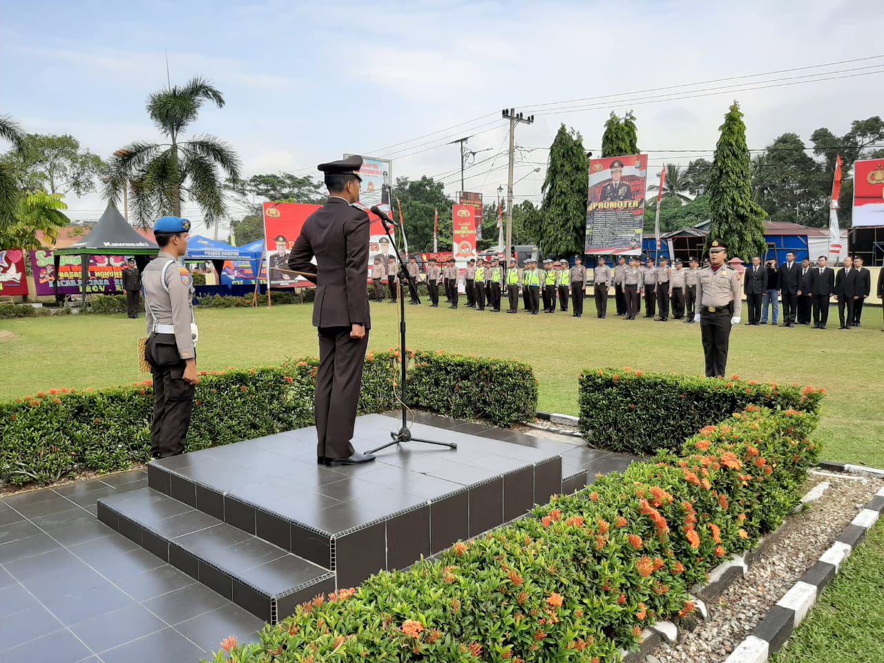 BANGKINANG. RIAUMADANI. COM - Peringatan Hari Bhayangkara ke-73 dengan tema "Dengan Semangat Promoter, Pengabdian Polri untuk Masyarakat, Bangsa dan Negara".dilapangan Mapolres Kampar, Rabu.