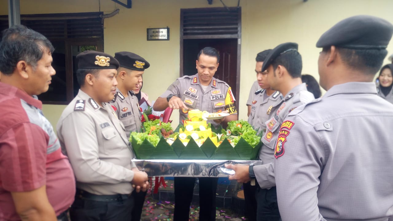 BANGKINANG. RIAUMADANI. com - Menjelang pelaksanaan apel pagi segenap anggota Polres Kampar mengadakan acara Surprise Ulang Tahun untuk Kapolres Kampar AKBP Andri Ananta Yudhistira SIK, MH.Selasa pagi.