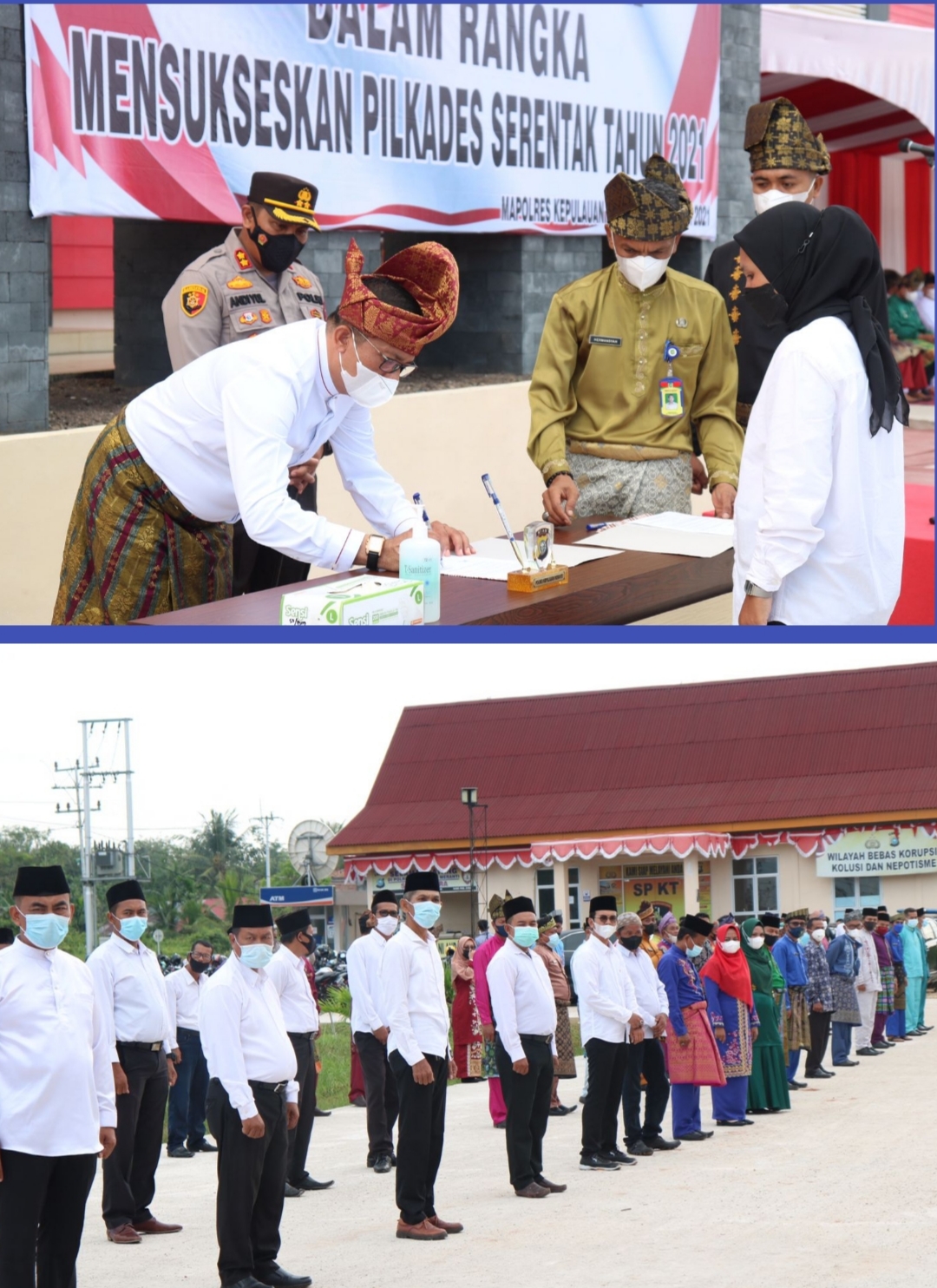 RIAUMADANI. COM - Jelang pelaksanaan Pemilihan Kepala Desa (Pilkades) serentak di Kabupaten Kepulauan Meranti yang dilaksanakan pada 11 tahun 2021 mendatang, Pemerintah daerah dan Polres menggelar deklarasi damai di halaman.