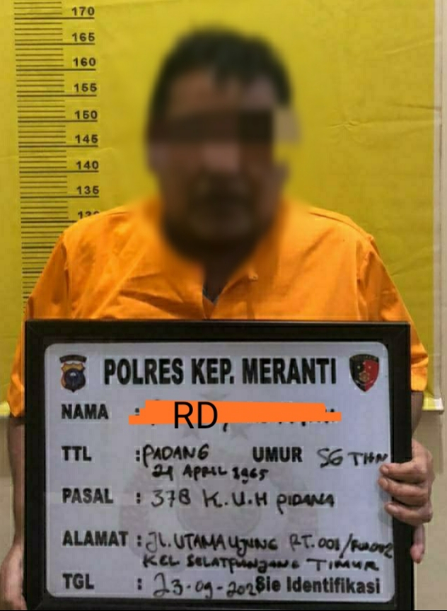 RIAUMADANI.COM - Satreskrim Polres Kepulauan Meranti berhasil mengamankan seorang terduga pelaku penipuan saat sedang berada dirumahnya di jalan Utama Ujung Kelurahan Selatpanjang.