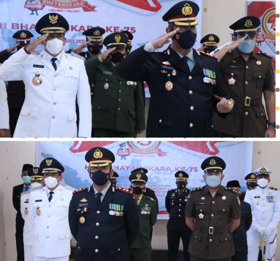 RIAUMADANI. COM - Puncak peringatan Hari Bhayangkara ke-75 yang jatuh pada tanggal 1 Juli 2021 diperingati sederhana karena masih dalam suasana pandemi.