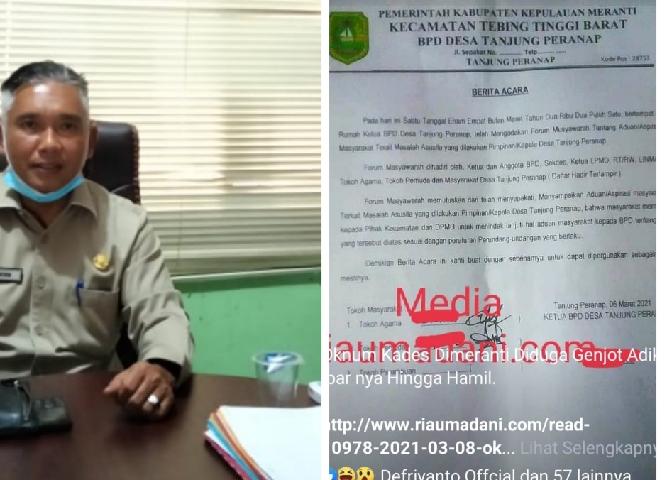 RIAUMADANI. COM - Terkait atas perbuatan oleh oknum Kepala Desa Tanjung Peranap, Kecamatan Tebing Tinggi Barat, Kabupaten Kepulauan Meranti, dengan aksi bejatnya itu, Kepala Dinas Perberdayaan Masyarakat Desa.