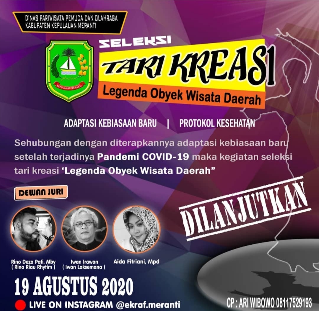 SELATPANJANG. RIAUMADANI. COM - Event Seleksi Tari kreasi tahun 2020 yang ditaja Dinas Pariwisata pemuda dan olahraga Kepulaun Meranti dengan tema Legenda Objek Wisata Daerah.