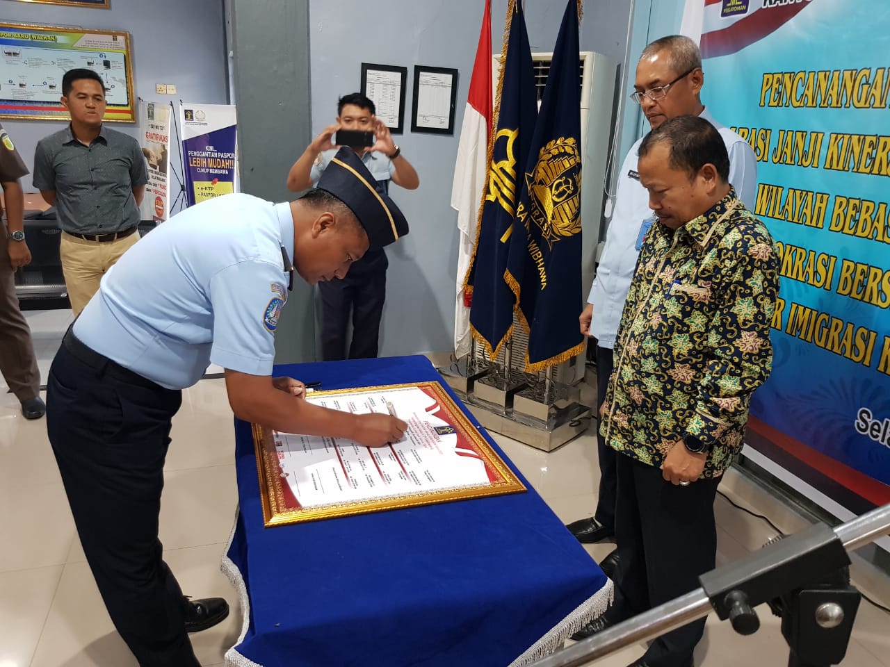 SELATPANJANG.RIAUMADANI.COM - Penjabat Sekretaris Daerah Kepulauan Meranti Bambang Supriyanto SE MM, menghadiri sekaligus menandatangani Pencanangan dan Penandatanganan Deklarasi Janji Kinerja Membangun Zona Integritas Menuju Wilayah Bebas Korupsi.