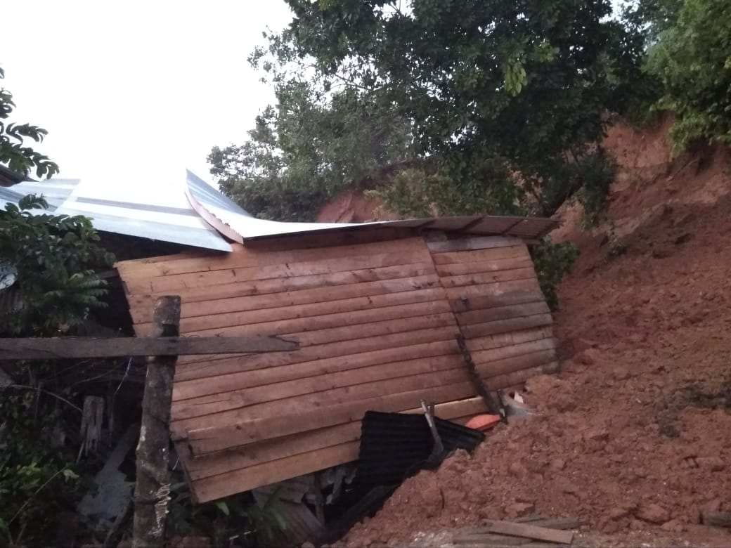 Teluk Kuantan, RIAUMADANI. com - Dua rumah tertimbun tanah akibat longsor yang berada di Desa Tebing Tinggi, Kecamatan Benai, kuantan Singingi Riau, beberapa waktu lalu,.
