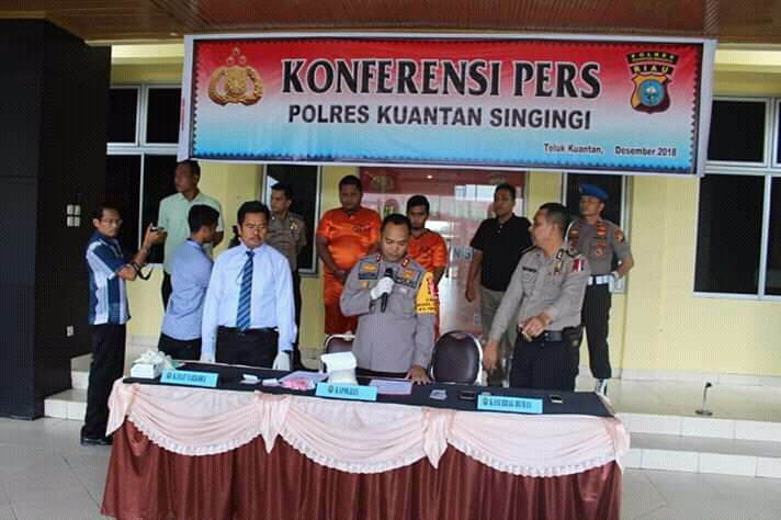 Teluk Kuantan, RIAUMADANI.com - kapolres Kuansing Gelar Kofrensi pers terkait penangkapan Dua orang tersangka pengedar narkorba yang memiliki Setengah kilogram Sabu dan kurang.