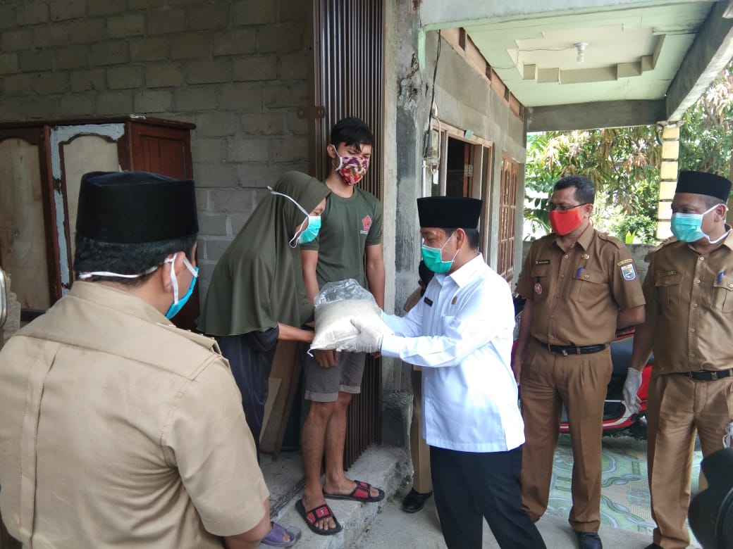 PELALAWAN. RIAUMADANI. COM - Pemerintah Kabupaten Pelalawan melaksanakan kegiatan penyerahan paket beras kepada ODP dan PDP Covid-19 yang ada di Kecamatan Bandar.