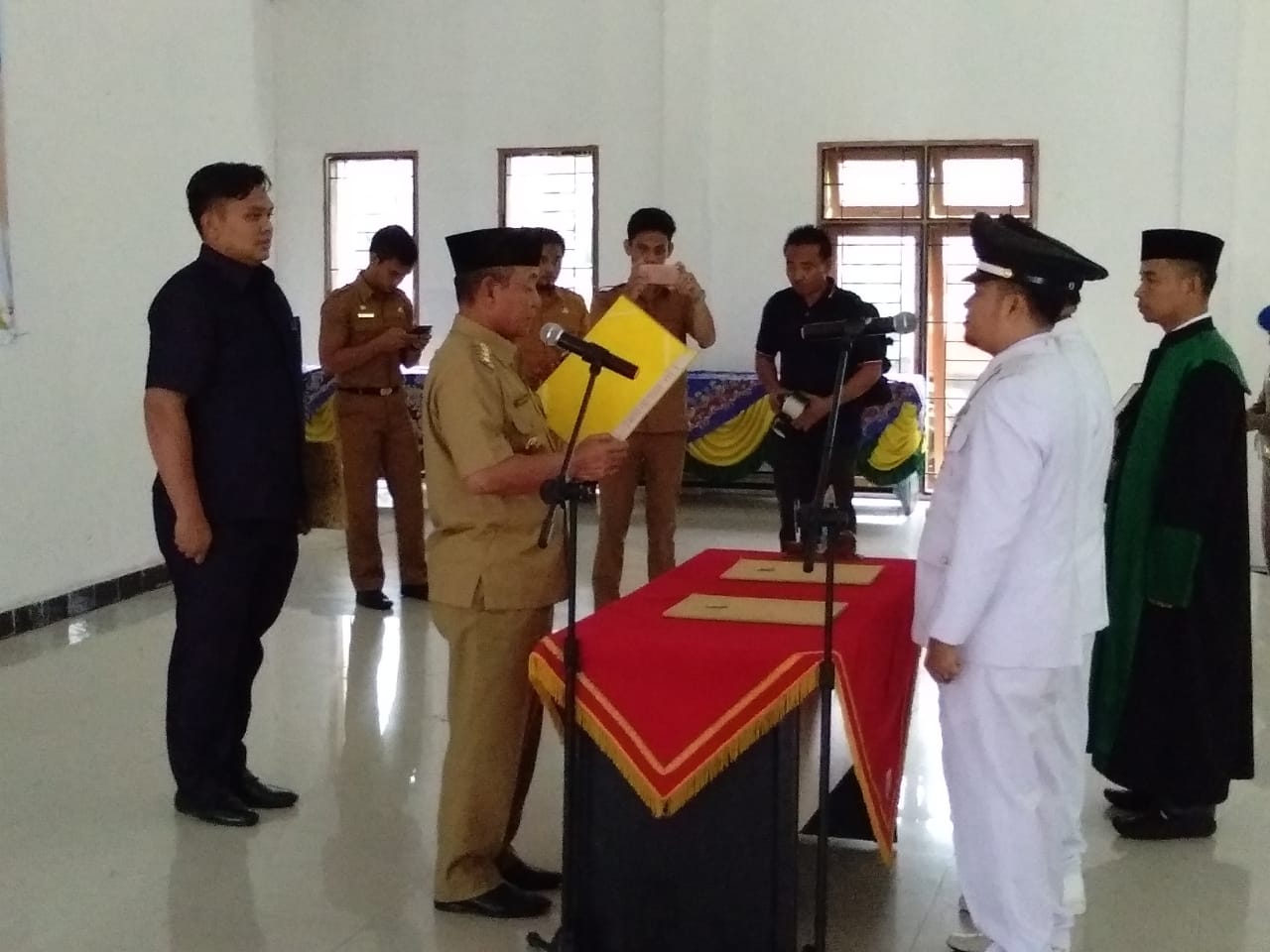 PANGKALAN KERINCI. RIAUMADANI. com - Dua orang Pejabat (PJ) kepala Desa dilantik oleh Bupati Pelalawan HM Harris. Pelantikan berlangsung di gedung aula kantor Camat Pangkalan Kerinci Senin.