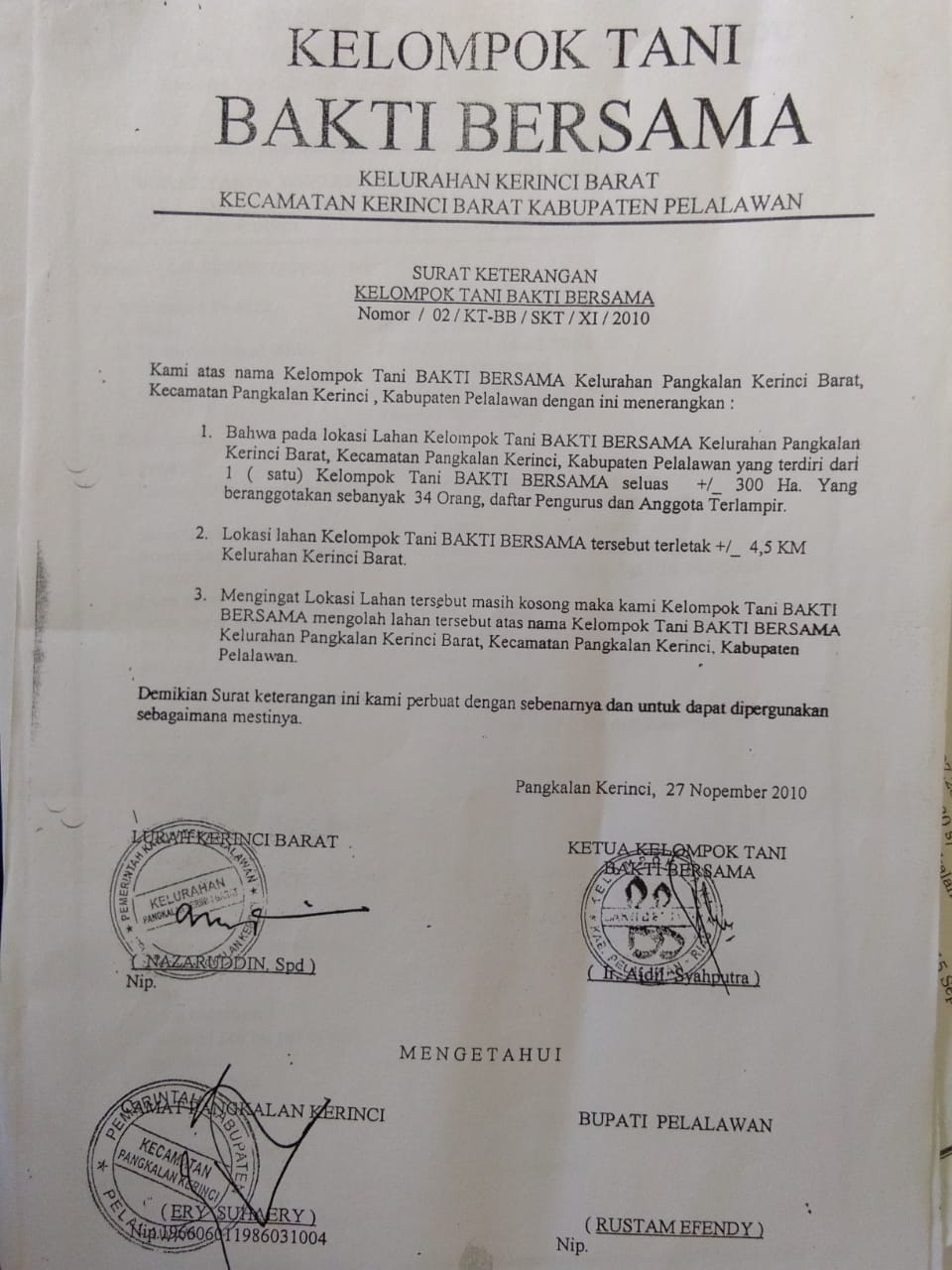 PELALAWAN. RIAUMADANI. com - Masyarakat Desa Rantau Baru, Kecamatan Pangkalan Kerinci, Kabupaten Pelalawan, Propinsi Riau, pertanyakan status lahan kelompok tani Bakti.