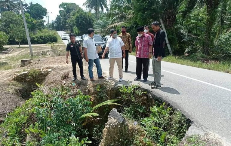 RIAUMADANI. COM – Wakil Bupati Pelalawan Nasarudin, SH MH bersama rombongan meninjau kondisi jalan rusak yang berada di Kelurahan Rawang Empat Kecamatan Bandar Petalangan Kabupaten.