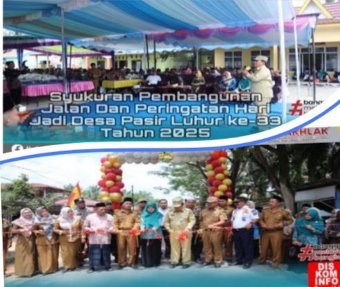 ROKANHULU. RIAUMADANI. COM, - Memasuki ahir masa jabatan Bupati Rokan Hulu (Rohul) Resmikan penggunaan jalan Desa Pasir Luhur yang telah siap di aspal bersempena dengan perayaan hari jadi Desa Pasir Luhur ke 33 tahun, Selasa.