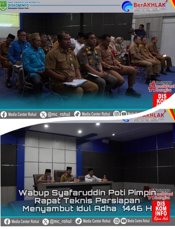 ROHUL, RIAU MADANI. COM - Pemerintah Kabupaten (Pemkab) Rokan Hulu (Rohul) laksanakan Rapat Teknis Pelaksanaan Malam Takbiran, Shalat Idul Adha Dan Penyembelihan Hewan Qurban Tahun 1446 H / 2025.
