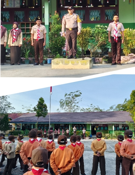Bhabinkamtibmas Kampung Kemuning Muda Polsek Bunga Raya, Pimpin Apel Pramuka di SDN 08 Kemuning Muda