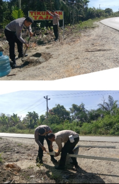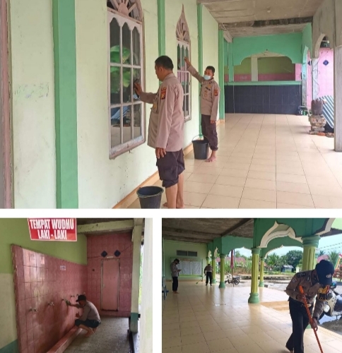 Kapolsek Sungai Apit Beserta Personil Lakukan Kerja Bakti di Masjid AL-Hidayah Kelurahan Sungai Apit