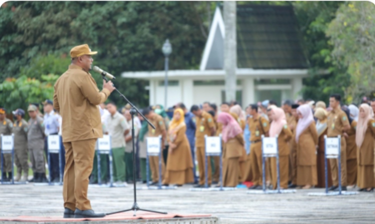 SIAK, RIAU MADANI. COM - Wakil Bupati Siak Syamsurizal memimpin apel pagi perdananya bersama Aparatur Sipil Negara (ASN) dan tenaga honorer di lingkungan Pemerintah Kabupaten.