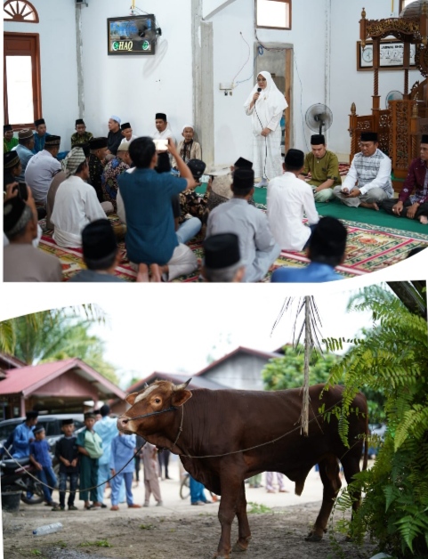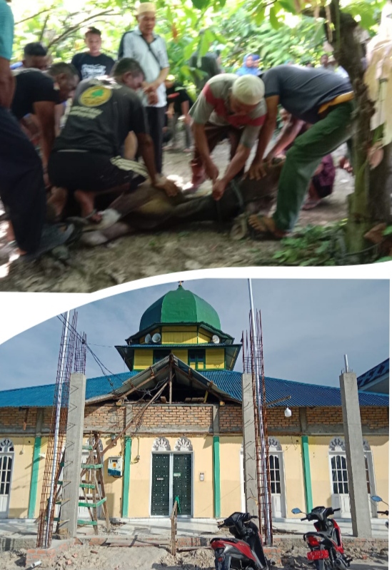 SUNGAI APIT, RIAU MADANI. COM - Mesjid Raya Jamiatul Hasanah Pada Hari ini, Sabtu 07/6/2025. Melakukan Penyembelihan hewan Qurban pada idul Adha 1446H dua ekor Kerbau dan Satu ekor.