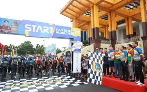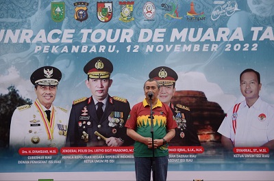 RIAUMADANI. COM. PEKANBARU - Kapolda Riau, Irjen Pol Mohammad Iqbal bersama sejumlah pejabat lainnya, melepas ratusan peserta Tour De Muara Takus, Sabtu (12/11/2022).
