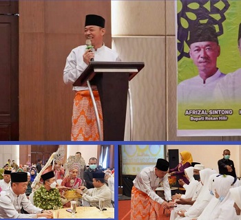 PEKANBARU - Ikatan Keluarga Masyarakat (IKM) Rokan Hilir Pekanbaru menggelar acara Halal Bihalal bersama dengan jajaran Pemerintah Kabupaten (Pemkab) Rokan Hilir (Rohil) sekaligus pelepasan jamaah Haji masyarakat Rohil Pekanbaru yang akan.