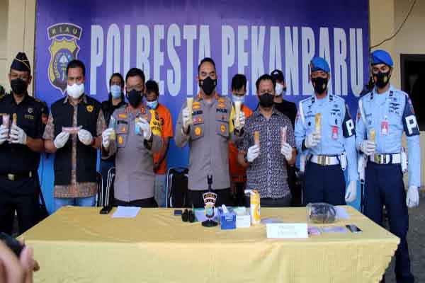 RIAUMADANI. COM - Berawal dari pengamanan petugas AVSEC Bandara Sultan Syarif Kasim II, dan Beacukai, Tim Satuan Reserse Narkoba Polresta Pekanbaru, tangkap dua pelaku tindak pidana.