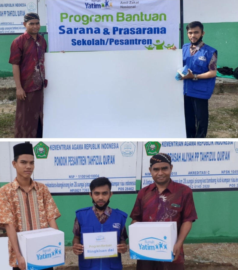 RIAUMADANI. COM - Senin (29/03/2021) siang ini, Rumah Yatim memberikan bantuan sarana prasarana dan bingkisan da i untuk Pondok Pesantren Tahfizul Qur an, Jalan Lintas Pekanbaru - Bangkinang KM 28, Desa Sungai Pinang, Kecamatan Tambang, Kabupaten.